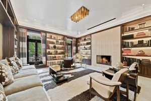 Known as The Modern House by Voce-di Design Studio, this newly built masterwork raises the bar for creativity, cutting-edge design, clean-lined modern aesthetic, fine craftsmanship and structural integrity. The home’s sleek, contemporary office comes complete with a Brazilian wood-backed, wood-burning fireplace and custom built-ins. For added privacy, the interactive office can be closed off with floor-to-ceiling glass walls quietly tucked within pocket doors.