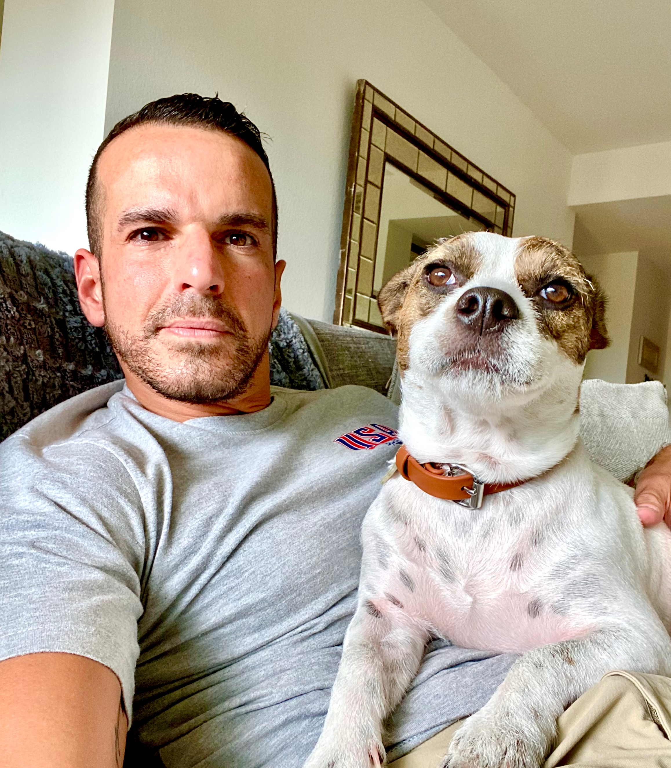 I love, love, love to travel. I love doing anything I can with my dogs, Hank the terrier and Milo the three-legged golden retriever. They love to hike and be in the pool every day, so they have a very fun schedule.