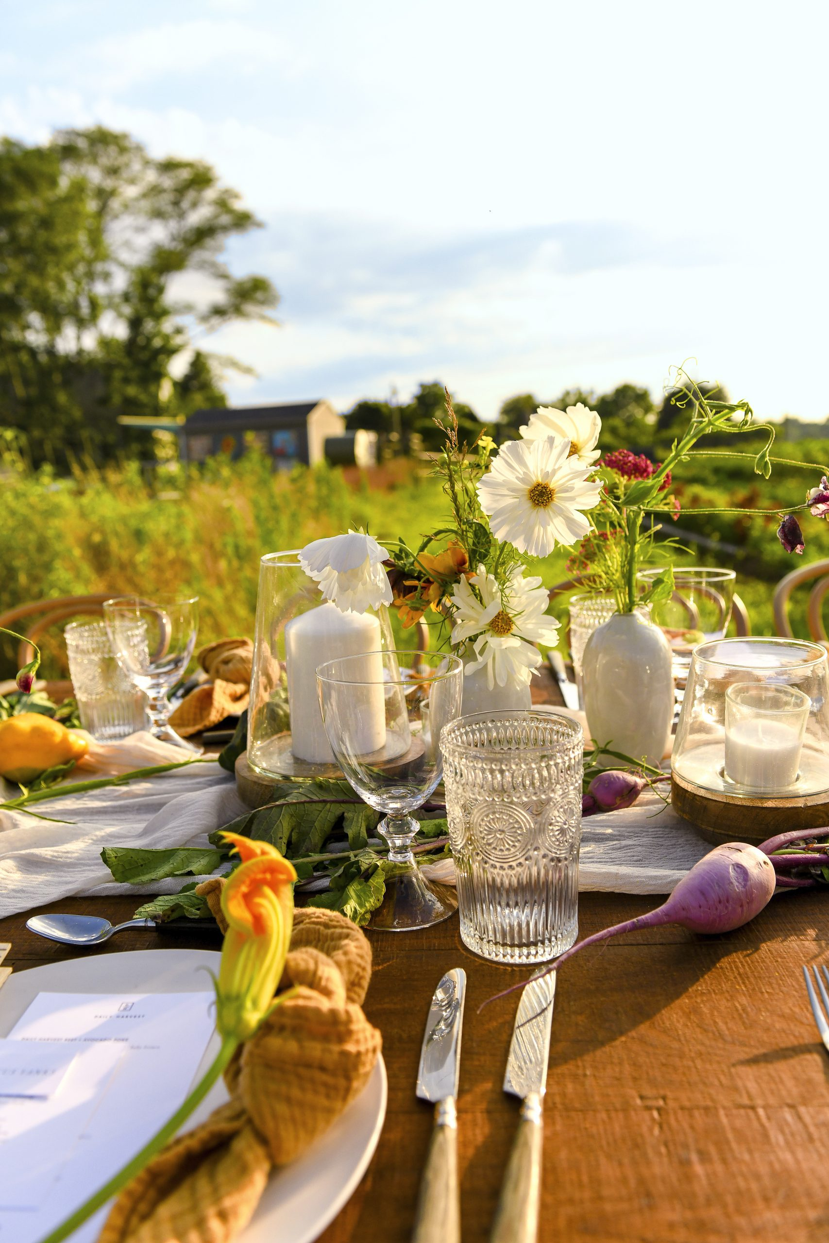 Carrots from Balsam Farms. (Photo: NICOLE GONZALEZ) The table is set for an alfresco dinner designed by organic food delivery specialists Daily Harvest and lifestyle guru Athena Calderone of EyeSwoon, served in the fields of Amber Waves. (Photo: JOE SCHILDHORNBFA.COM)