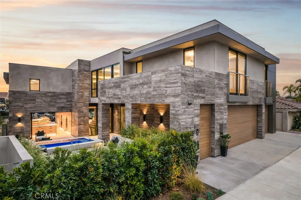 Located in Newport Beach, this brand-new, 6,562-square-foot waterfront home is a stylish escape. Features include four bedrooms, five full bathrooms, one half-bath, panoramic water views, a double-height entryway, temperature-controlled walk-in wine cellar, and automated pocket doors for effortless indoor-outdoor living and entertaining. Each bedroom has its own private en-suite bathroom, while an office, multipurpose space, and flex room ideal for a gym provide additional living space. Residents will enjoy sitting out by their private dock, or at the front of the home where there’s a patio, fire pit, and in-ground spa.