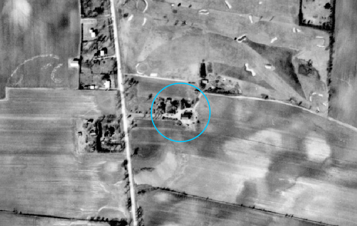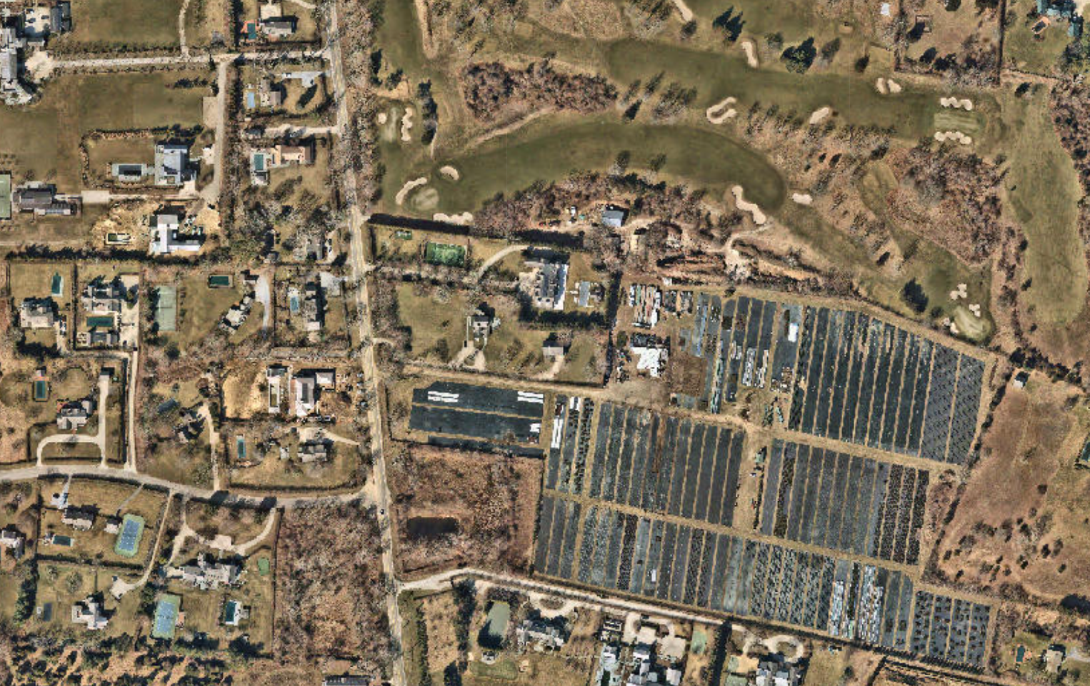 An aerial image of Bridgehampton farmland from 1962, with Paul Brennan's family farmhouse in the center. (Photo courtesy of Paul Brennan) The same aerial view of Bridgehampton from 2022. (Photo courtesy of Paul Brennan)