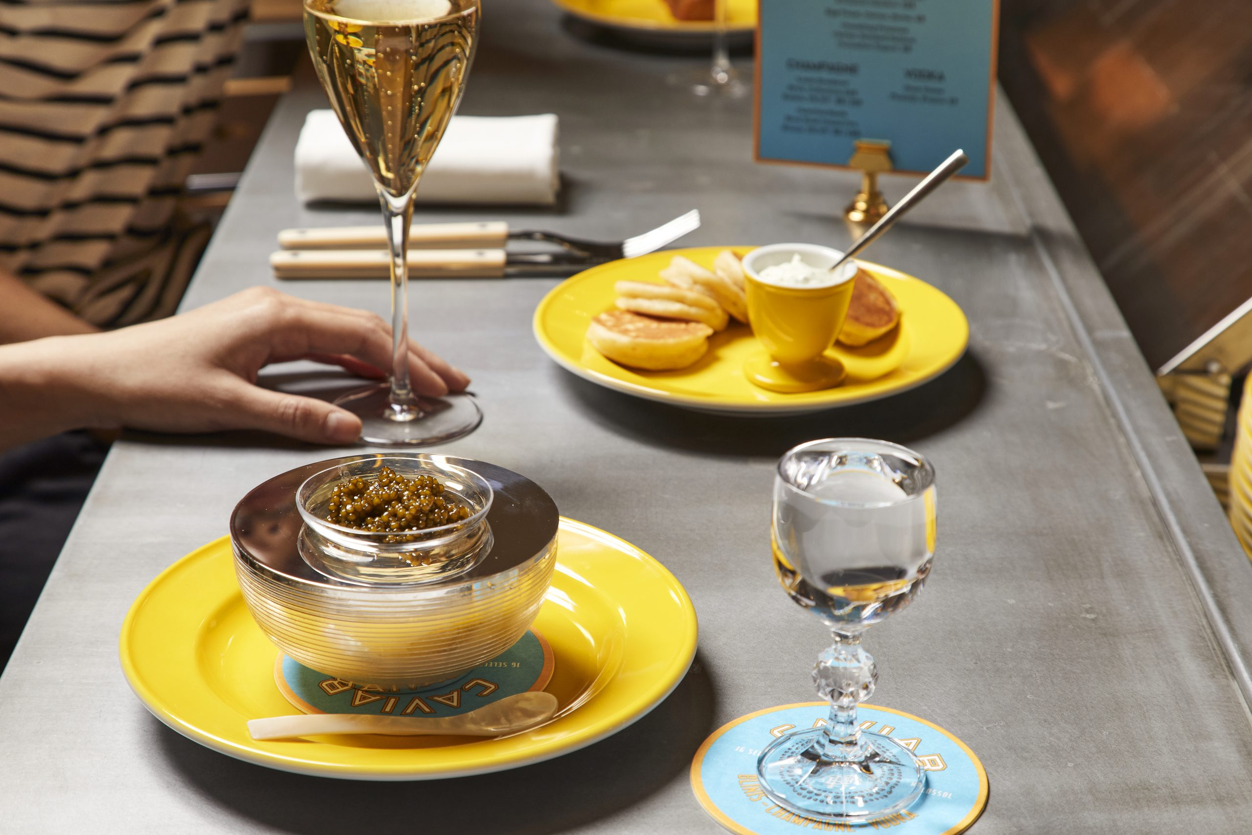 Caviar and Champagne at the Tin Building in Manhattan. (Photo: HALLIE BURTON) T-Brasserie at the Tin Building offers French bistro fare. (Photo: COURTESY TIN BUILDING) The Packing House in Anaheim serves gourmet food in a Mission Revival building that was once a stop for Sunkist oranges en route to market. (Photo: DEVON REEVESCOURTESY PACKING DISTRICT) High Street Place in Boston puts an upscale spin on the concept of food halls, with offerings from acclaimed local chefs. (Photo: Brian Samuels) The humble hot dog gets a sophisticated twist and a side of Moet Imperial